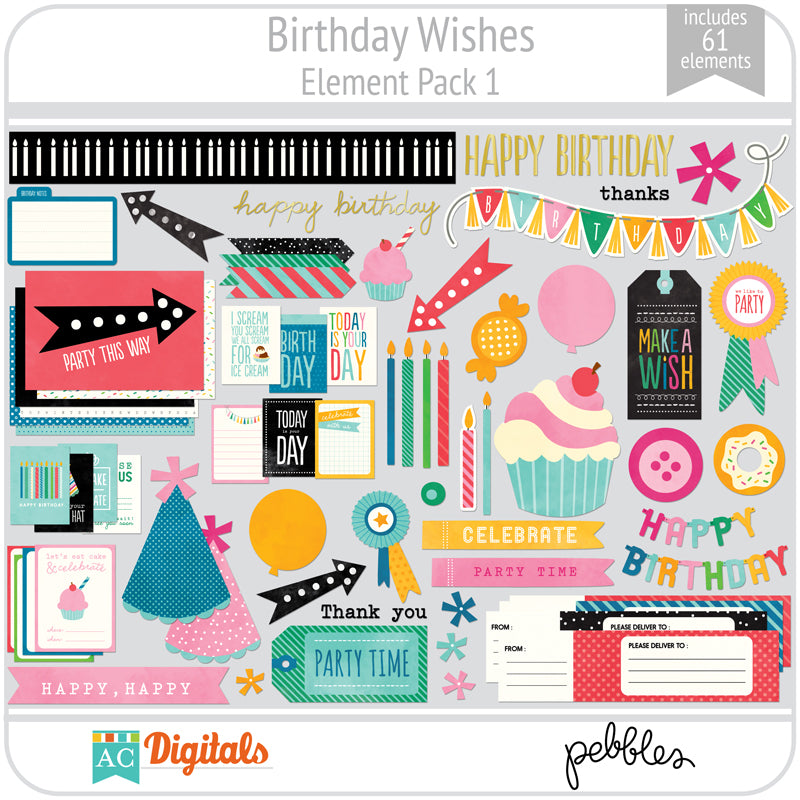 This celebratory collection is perfect for everything from creating a sweet party setting to documenting the birthday celebrations of those you love. Birthday Wishes features classic icons like ice cream and cake, joined by trendy cupcakes and donuts in an array of bright, cheerful colors.