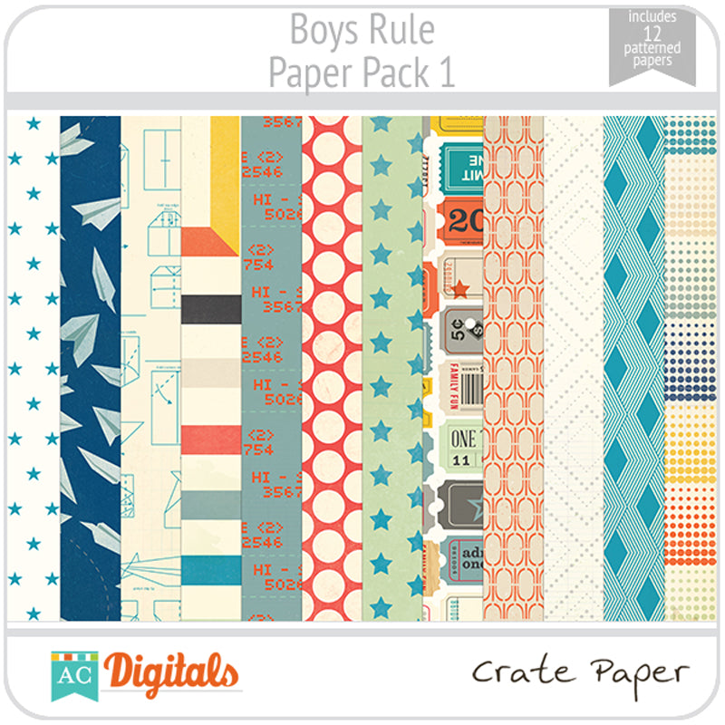 Boys Rule! This collection is full of eclectic icons that will make your next boy layout or project a big hit! Boys Rule is so versatile and is perfect for any age. It works for baby boys all the way up to those college boys that love to skateboard, game and everything in between. Enjoy the new Boys Rule collection, but be prepared — it is so inspiring that you may have the need to play some video games after. :)