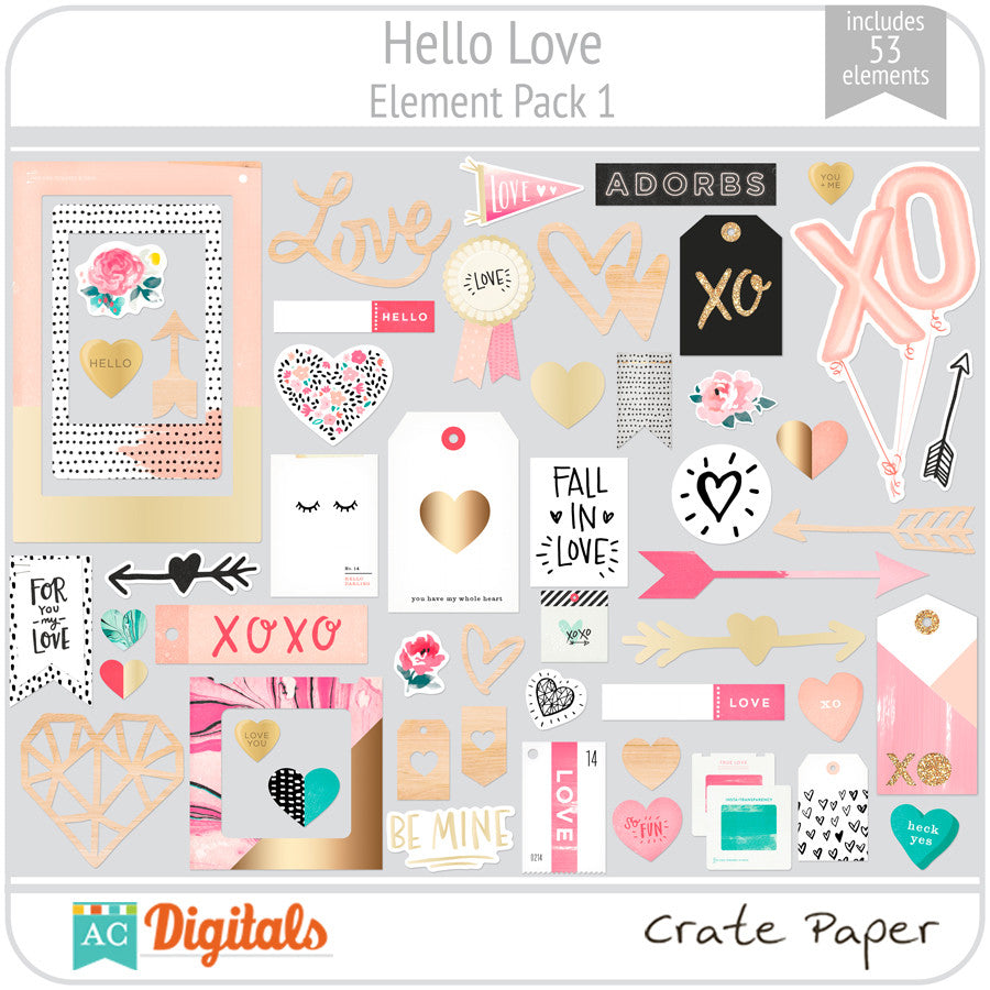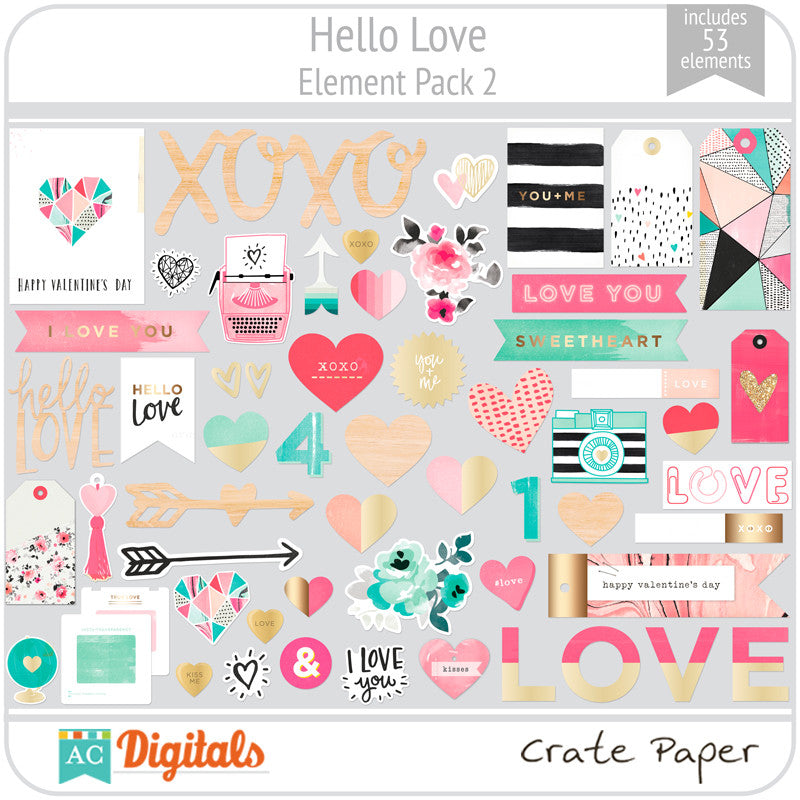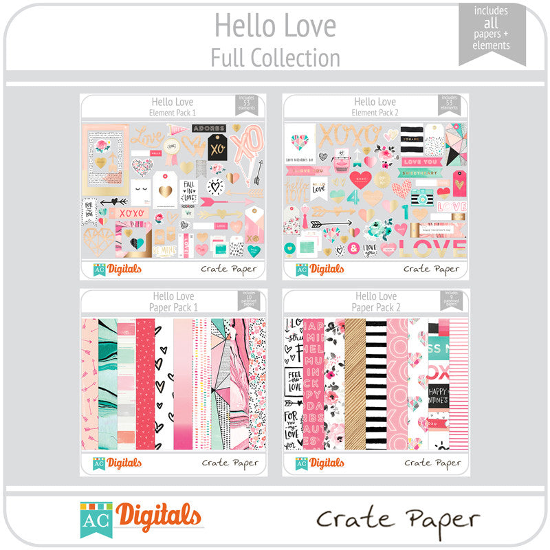 Hello, Love is a darling, fresh collection that will steal your heart with its lovely pink colors, adorable hearts and everyday love icons along with amazing marble papers that will make you weak in the knees!