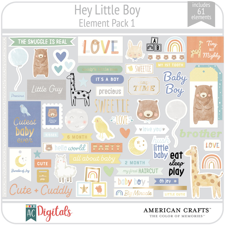 Introducing the Hey Little Boy Collection. With adorable baby animals and playful designs, this pack is perfect for any little boy. Get ready to add a touch of sweetness to your designs with this charming collection. (Warning: may cause excessive "awws" and uncontrollable smiling.)
