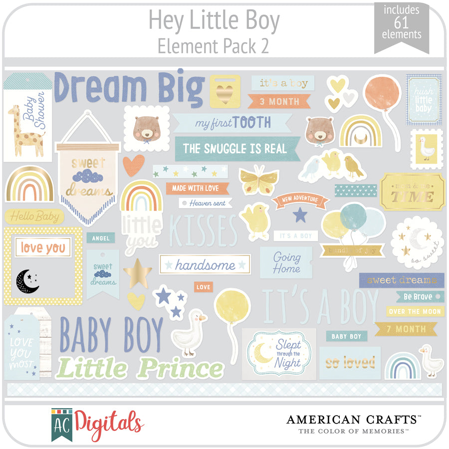 Introducing the Hey Little Boy Collection. With adorable baby animals and playful designs, this pack is perfect for any little boy. Get ready to add a touch of sweetness to your designs with this charming collection. (Warning: may cause excessive "awws" and uncontrollable smiling.)