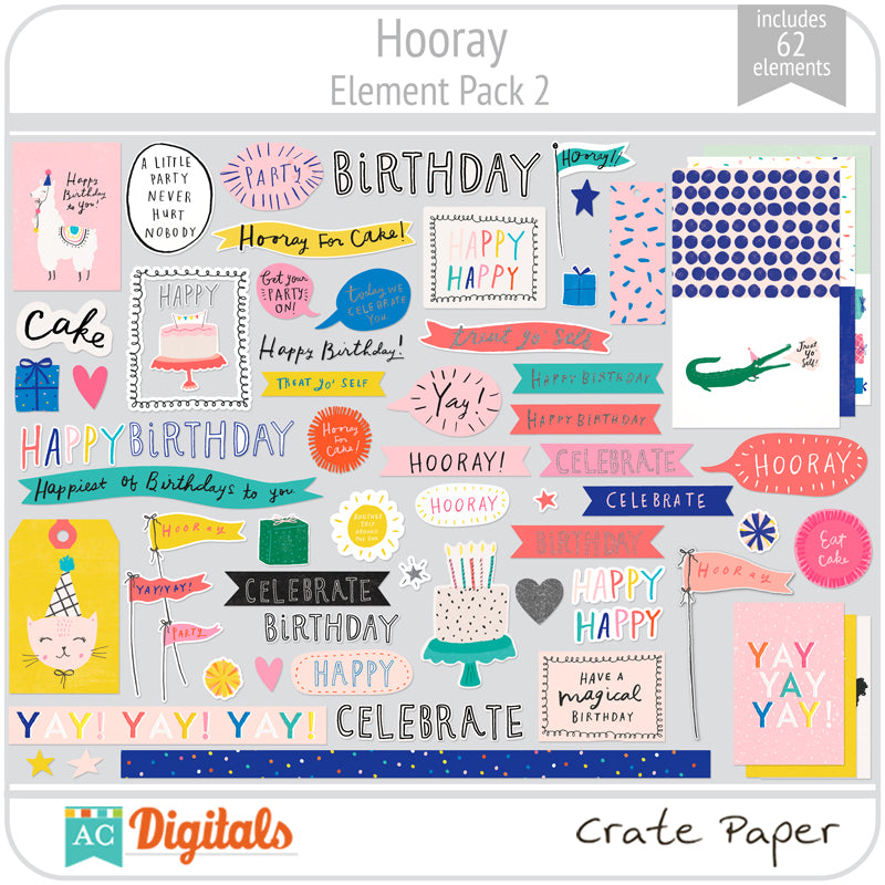 Like confetti at a party, the Hooray Collection with glitter accents is the perfect finishing touch to your celebratory pages, cards, tags and more!