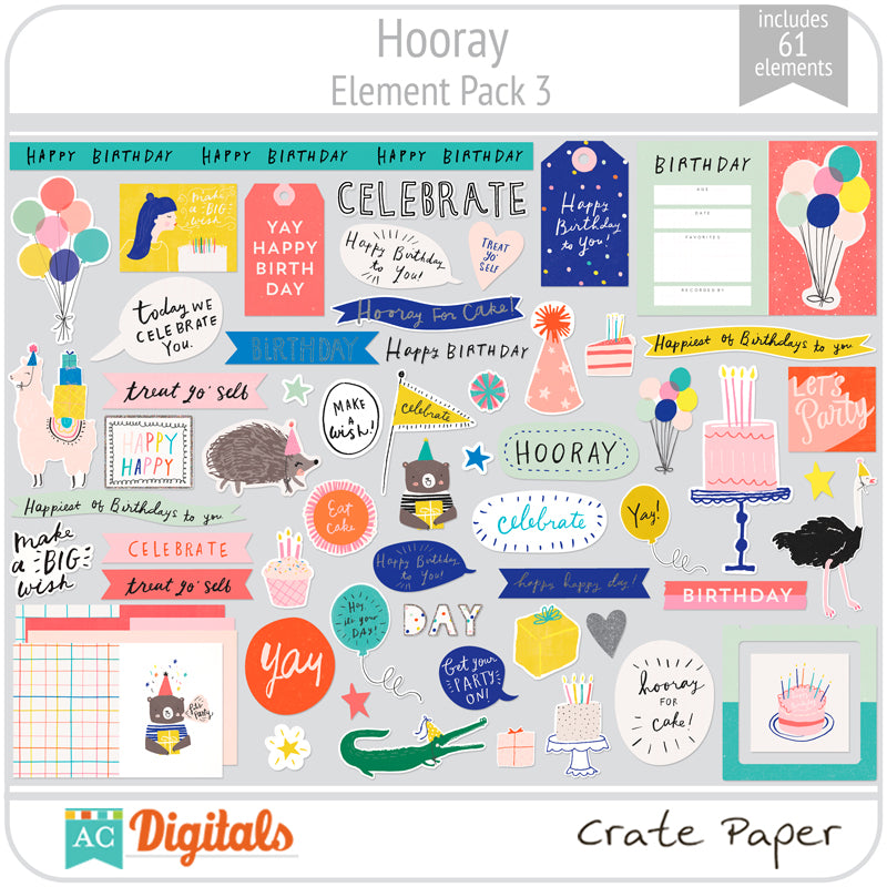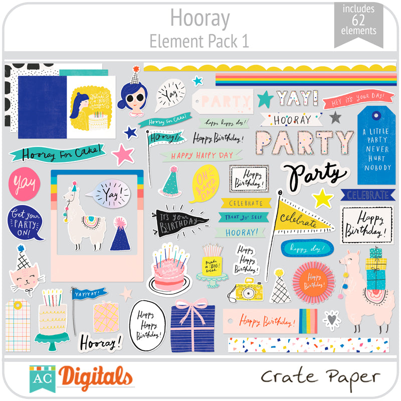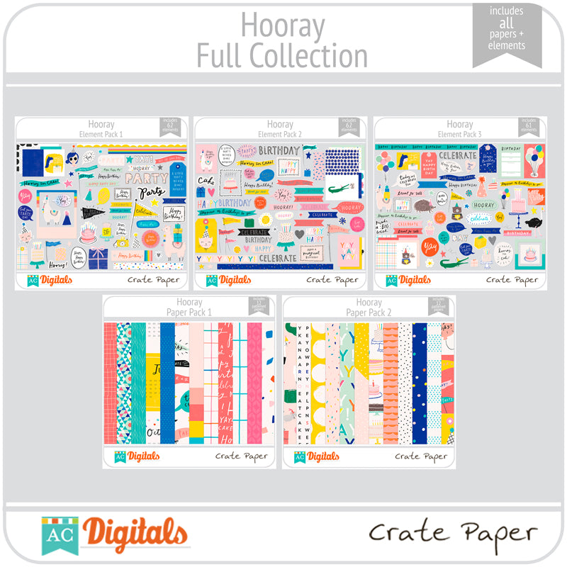 Like confetti at a party, the Hooray Collection with glitter accents is the perfect finishing touch to your celebratory pages, cards, tags and more!