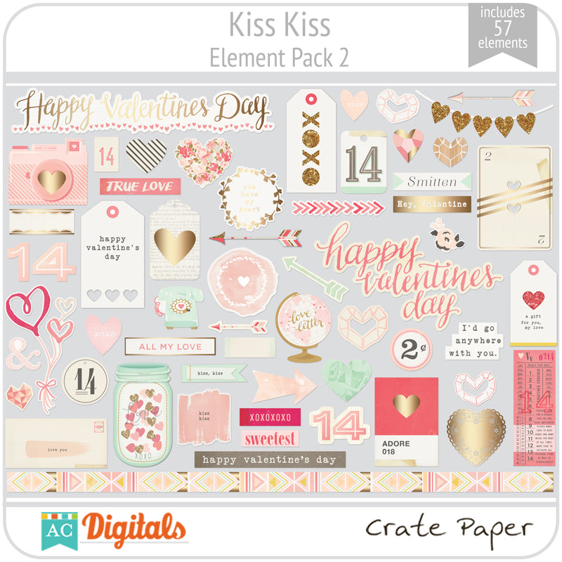 Kiss Kiss has an amazing variety of hearts & icons in tons of styles that can help you create projects that vary from vintage to modern. The collection has a true Valentine's color palette with a mix of gold and wood that will make your Valentine's projects a hit.