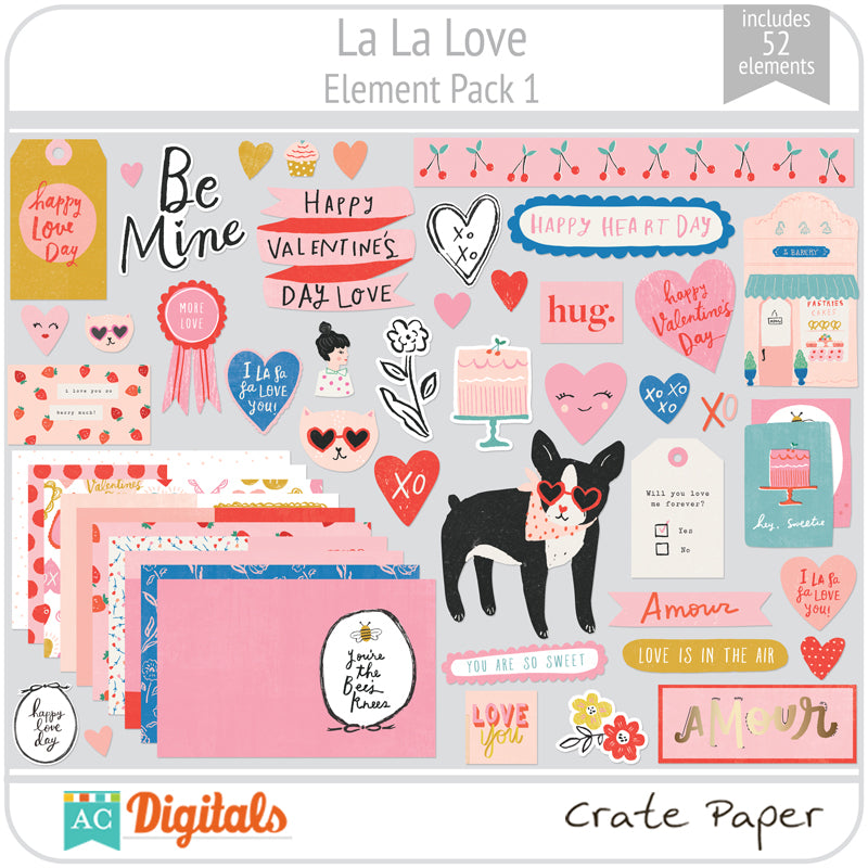 Adorable phrases, delightful papers, and whimsy ephemera will shower your projects with love using the La La Love collection from Crate Paper!