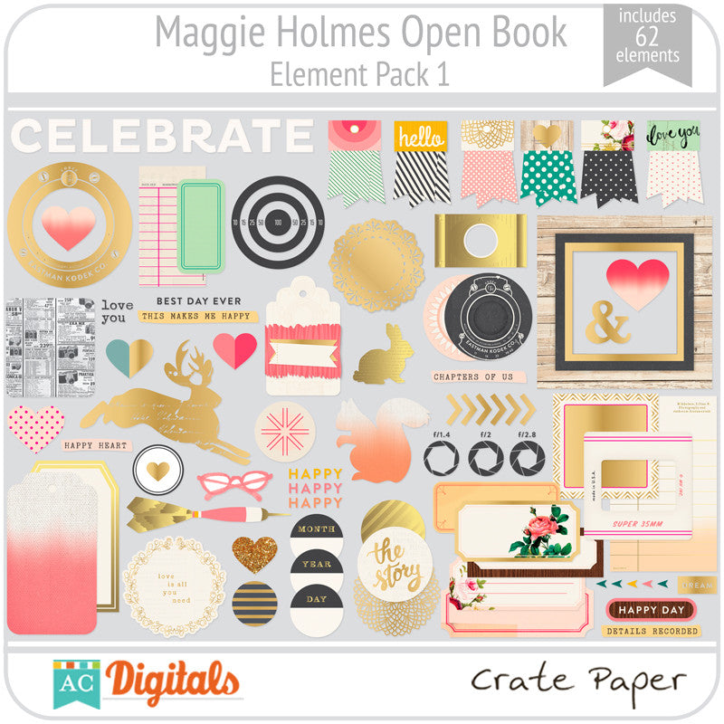 The Open Book collection is full of everyday scrapbooking, storytelling and photography elements that will make your life story cherished for future generations. It is full of bright colors and gold with a strong black and white contrast. It is the perfect color palette for Fall and Winter but works for everyday layouts and projects.