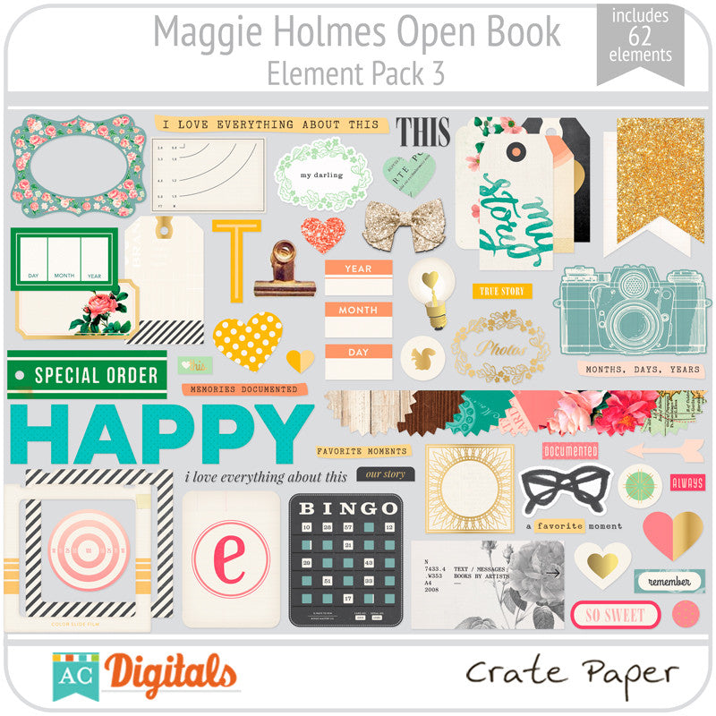 The Open Book collection is full of everyday scrapbooking, storytelling and photography elements that will make your life story cherished for future generations. It is full of bright colors and gold with a strong black and white contrast. It is the perfect color palette for Fall and Winter but works for everyday layouts and projects.
