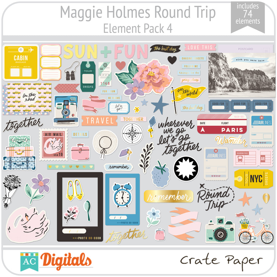 Maggie Holmes Round Trip is an everyday collection for the world traveler at heart! It features lots of darling travel icons to help you collect your memories whether near or far. I know we are not all back to traveling yet, but if you are like me, you have plenty of photos from previous vacations that haven't been properly documented yet. This new collection of products is perfect for pulling out those images and making some scrapbook pages or a cute mini album!