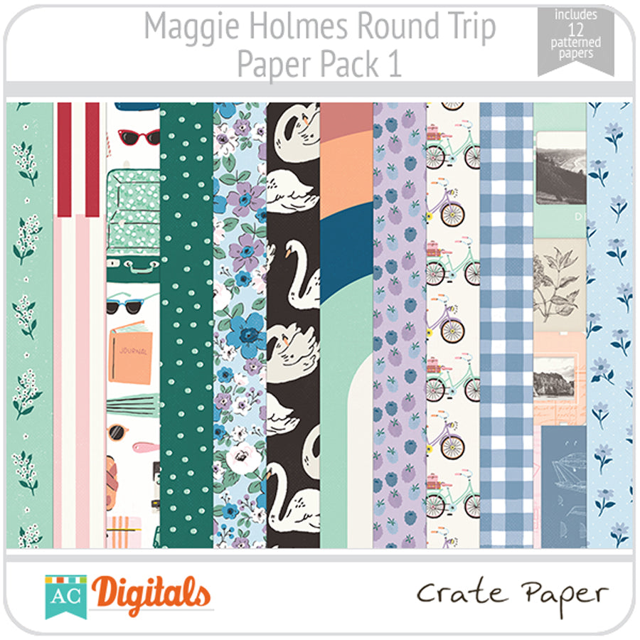 Maggie Holmes Round Trip is an everyday collection for the world traveler at heart! It features lots of darling travel icons to help you collect your memories whether near or far. I know we are not all back to traveling yet, but if you are like me, you have plenty of photos from previous vacations that haven't been properly documented yet. This new collection of products is perfect for pulling out those images and making some scrapbook pages or a cute mini album!