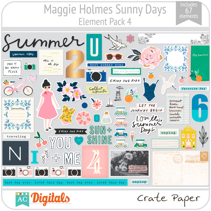 Sunny Days has a great mix of icons prefect for documenting your summer themed and travel memories, along with a nice helping of everyday illustrations as well. You'll see some cute beauty summer artwork. Think charming summer beach town on the wast coast where you can hit up the farmer's market in the morning for some fresh fruit and flowers, ride your bike along the boardwalk in the afternoon, and relax under a darling boho beach umbrella with your favorite book for hours on end.