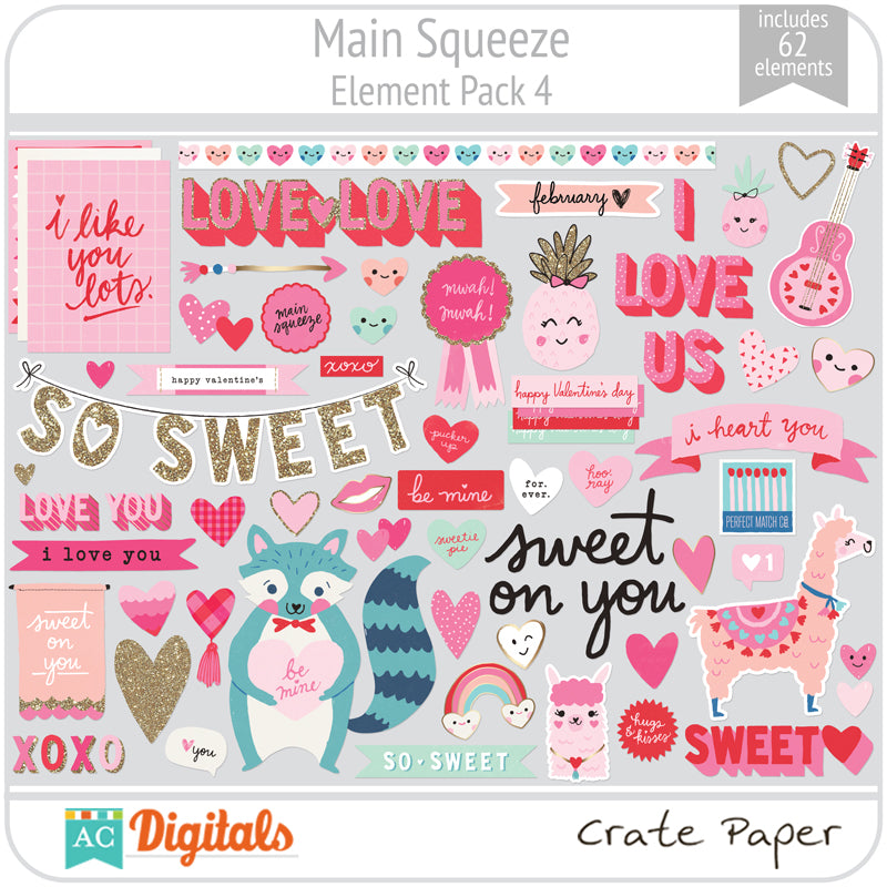 Get love-struck with Main Squeeze by Crate Paper! Showcase your love and affection for that special someone with a beautiful palette of strawberry red, playful pink, and sweet hints of teal. Make your heartfelt surprises pop with dashes of bold black and dazzling gold glitter finishes. Trendy llamas and foxes combine with adorable lemons, pears, and pineapples to set the scene for your next Valentine's Day project. Feel the love and get creative with Main Squeeze!