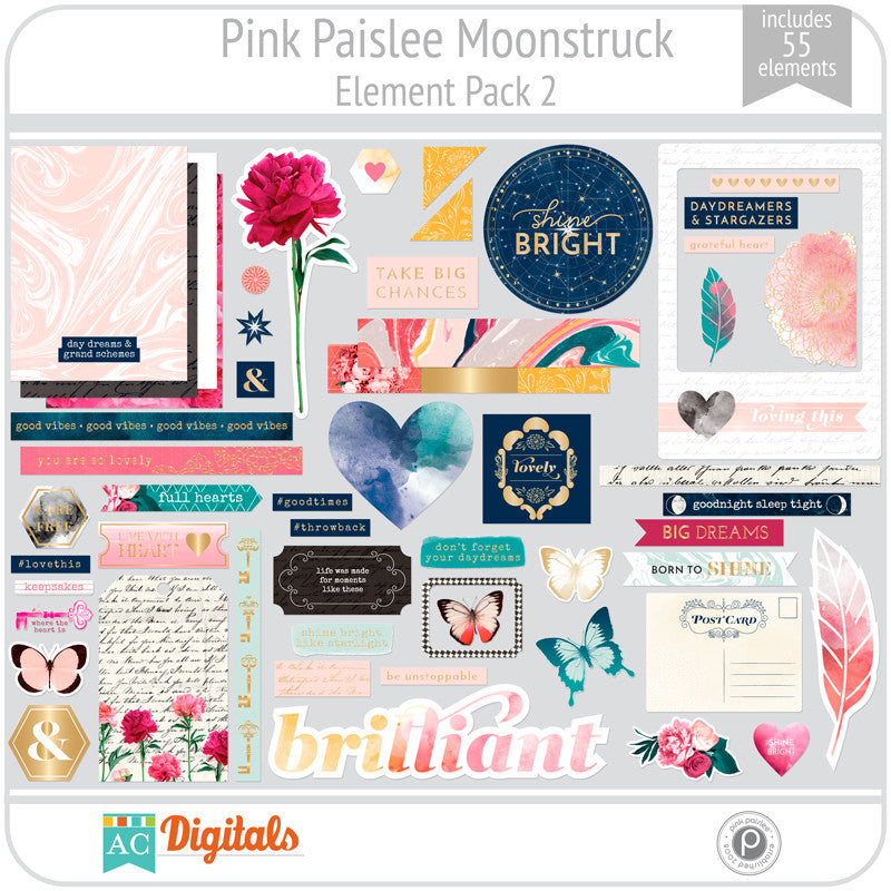 This collection includes 22 digital papers in JPG format and 166 elements in PNG format.