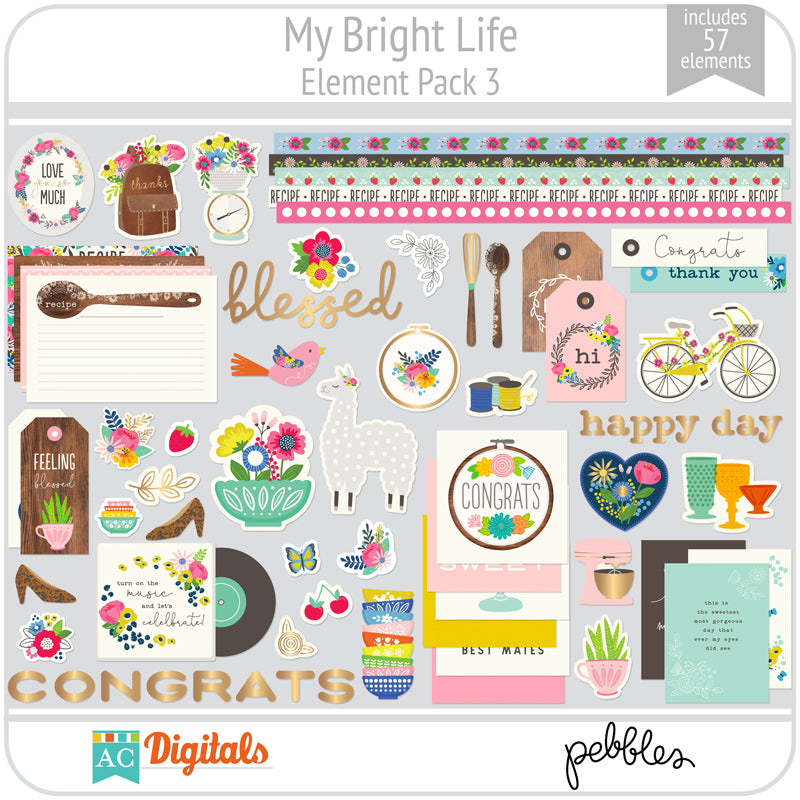 This adorable collection expresses the inner child of nearly every woman with her collection of eclectic tea kettles, bicycles, cars, and other trinkets dancing across patterned papers and embellishments. Her love of all things bright & beautiful is wrapped up inside a cute color palette of teals, pinks, yellows, and greens.