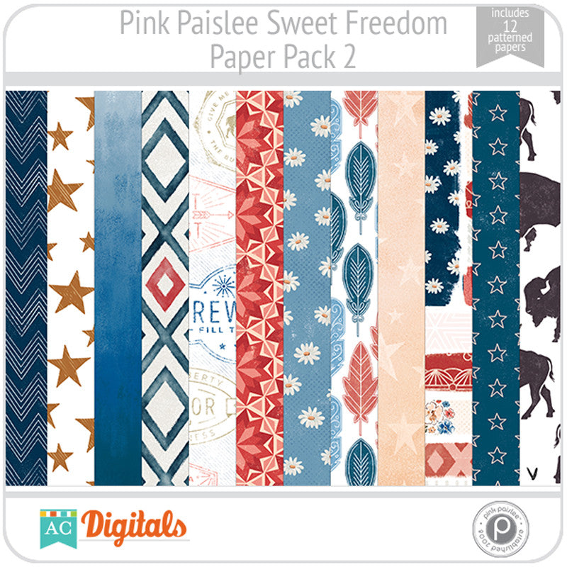 Let your free spirit take flight and capture your favorite summer memories with Sweet Freedom. Stars and stripes, fireworks and other patriotic elements are displayed in a faded color palette of red, white, and blue paired with warm earth tones. Distressed textures, leather, and copper add an old world feel to this on-trend collection.